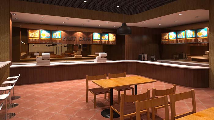 快餐店餐區(qū)裝修設(shè)計(jì):四人桌成為空間的標(biāo)配,各種形式的餐桌將空間開(kāi)發(fā)到極致,正是因?yàn)檫@不同的餐區(qū)設(shè)計(jì),讓整個(gè)空間有了不一樣的特色,讓快餐店也有了自己的競(jìng)爭(zhēng)力。