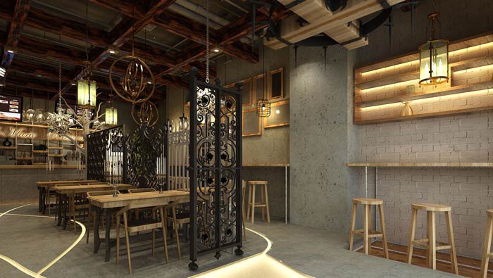 特色快餐店過(guò)道裝修設(shè)計(jì):過(guò)道從前臺(tái)之后,開始一分為二,這樣做是希望讓餐區(qū)更加的便捷,整個(gè)空間四通八達(dá),使的餐廳效率提升,地面白色裝飾為整個(gè)空間帶來(lái)了活力。
