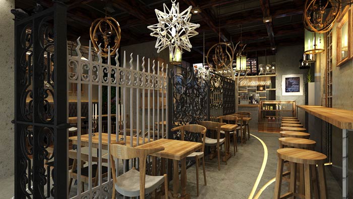 特色快餐店餐區(qū)裝修設(shè)計(jì):空間氛圍和咖啡廳類似,這是設(shè)計(jì)師經(jīng)過(guò)深思熟慮之后決定的,這也是快餐廳的位置決定的,這里不僅適合吃飯,同時(shí)也適合客戶在休息、聊天。