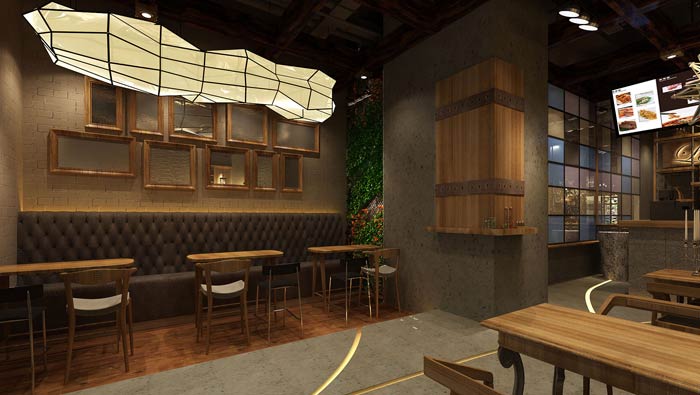 本次為特色快餐店裝修設(shè)計(jì)方案,快餐店位于商業(yè)廣場(chǎng)內(nèi),快餐店設(shè)計(jì)面積在200平左右,設(shè)計(jì)師結(jié)合此地段人們購(gòu)買方式的特征,決定打造一個(gè)特色快餐廳設(shè)計(jì)方案,一來(lái)這樣的設(shè)計(jì)符合周圍客戶的定位,二來(lái)快餐廳也符合周圍客戶的習(xí)慣,故此特色設(shè)計(jì)+快餐廳兩者一拍即合。