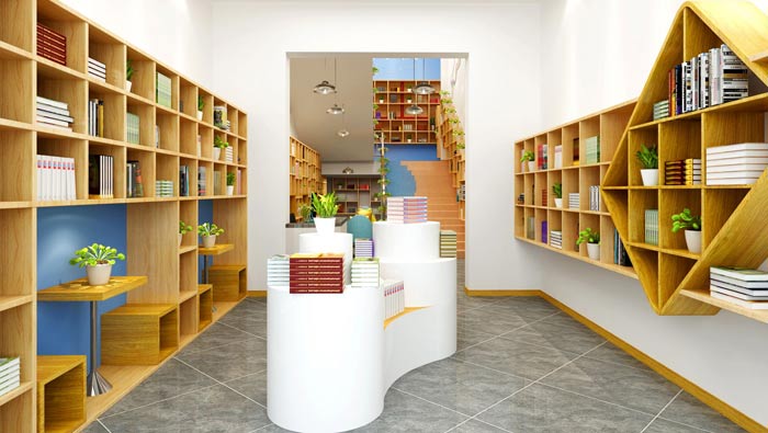 舞蹈培訓(xùn)機(jī)構(gòu)一樓前廳設(shè)計(jì):一樓前廳主要是圖書(shū)銷(xiāo)售、購(gòu)買(mǎi)與閱讀,在這里有著各式各樣的書(shū)籍,孩子們可以在這里閱讀,柜子的設(shè)計(jì),打破傳統(tǒng)的中規(guī)中矩,柜子中藏著休息區(qū)域,讓空間更有體驗(yàn)感。