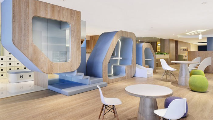 兒童教育培訓(xùn)機(jī)構(gòu)接待區(qū)設(shè)計(jì):說(shuō)是接待區(qū)其實(shí)也兼顧洽談與休閑,在設(shè)計(jì)中設(shè)計(jì)師在同一個(gè)空間內(nèi),設(shè)計(jì)并放置了兩套家具系統(tǒng),目的就是滿足兒童和成人各自的需求。