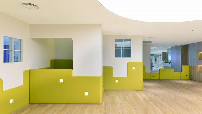 兒童教育培訓(xùn)機(jī)構(gòu)防磕碰設(shè)計(jì):在孩子們可以夠得到的地方,設(shè)計(jì)師都加入了防磕碰海綿,目的就是希望給孩子一個(gè)安全、放松的空間,讓孩子們玩的開(kāi)心、玩的放心。