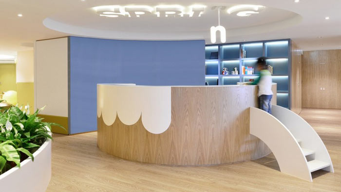 本次為兒童教育培訓(xùn)機(jī)構(gòu)裝修設(shè)計(jì)案例,設(shè)計(jì)師沒(méi)有采用童話式的設(shè)計(jì)元素,取而代之的是中性的設(shè)計(jì),白色、淺綠、淺藍(lán)的色彩運(yùn)用、和木材將兒童和家長(zhǎng)的視角相結(jié)合,并在空間、軟裝的設(shè)計(jì)細(xì)節(jié)中表現(xiàn)出來(lái),以此完成兒童、家長(zhǎng)和教育工作者之間的對(duì)話和互動(dòng)。