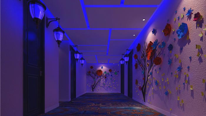 過道的設(shè)計(jì):此次給人的第一感覺就好似夢境,仿佛我們都置身在夢境之中,在夢境之中我們往往會(huì)見到很多現(xiàn)實(shí)中見不到的事物,這也是設(shè)計(jì)師希望給大家的感受,以此讓大家產(chǎn)生期待,為后面的體驗(yàn)埋下伏筆,讓客戶在期待之中去體悟其中的美好。