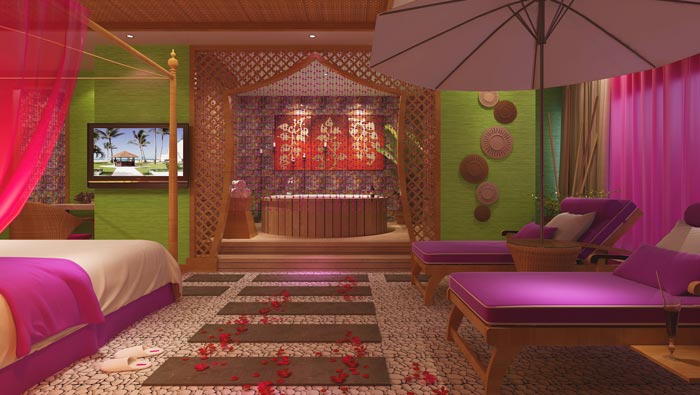 客房的設(shè)計:此處給人的感覺仿佛到了馬爾代夫,這也是設(shè)計師為哪些沒有條件的戀人準備的,在設(shè)計師看來現(xiàn)在很多戀人由于這樣、那樣的事情,無法一起出外旅行,故此設(shè)計師希望給彼此一個夢,在這里戀人好似到了馬爾代夫,欣賞到沙灘、海水、日光浴,讓戀人足不出戶享受大美麗的美麗風(fēng)光。
