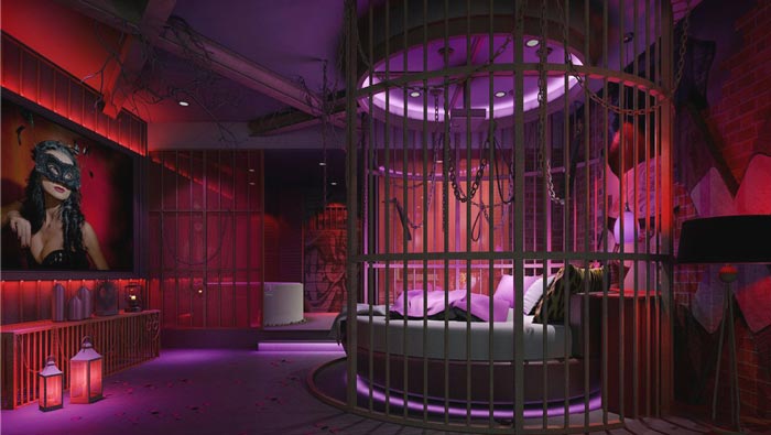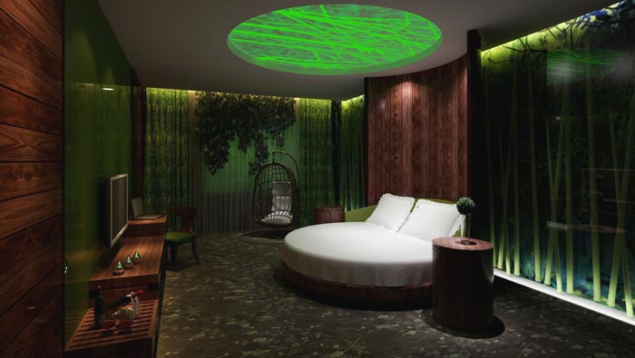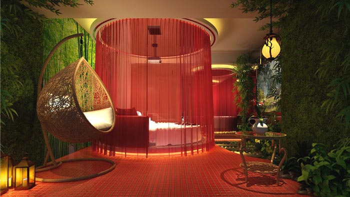 情趣客房的設(shè)計(jì):這樣的客房酒店只有2間,主要也是為了嘗試、或者說(shuō)是試驗(yàn),設(shè)計(jì)師設(shè)計(jì)的目的也是為了兼具以得,同時(shí)設(shè)計(jì)師也強(qiáng)調(diào)這樣的房間不宜過(guò)多,由于文化的不同,此處也是在設(shè)計(jì)師的修改之下完成的,含蓄的美遮蓋住空間原本的含義,讓人更容易接受。