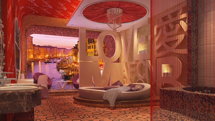 愛(ài)客房的設(shè)計(jì):愛(ài)是那么的說(shuō)不清、道不明,這也是古往今來(lái)詩(shī)人、藝術(shù)家一直追求的主題,在此次設(shè)計(jì)師將愛(ài)具象化,但是奇妙的是每一位戀人在這里感受到的都是不同的,因?yàn)樵谠O(shè)計(jì)師看來(lái),每一對(duì)情侶對(duì)于愛(ài)的見(jiàn)解都是稍有不同的,就好似水上的船兒,搖曳之間盡顯獨(dú)特的美。
