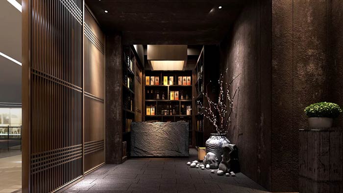 日式料理餐廳過道設(shè)計(jì):這里是連接前臺(tái)、內(nèi)部空間的過渡區(qū)域,空間的留白、簡潔延續(xù)了中式設(shè)計(jì)的特色,裝飾雖說不多,但是在整個(gè)空間中卻起到畫龍點(diǎn)睛的作用。