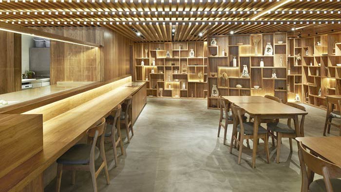 日式餐廳餐區(qū)設(shè)計(jì):餐區(qū)、吧臺(tái)、展示區(qū)構(gòu)成一個(gè)就餐區(qū)域,在這里客戶可以看到,農(nóng)作物是如何從源頭到做成熟食,這樣的過程讓客戶吃的更香,讓客戶感受到生活的美好。