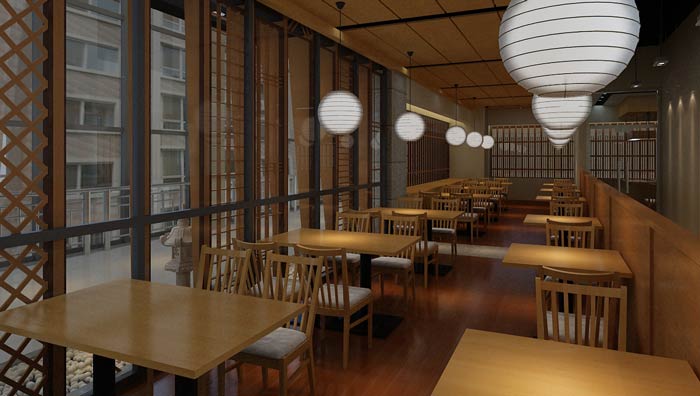 日本料理餐廳過道餐區(qū)設計:這里是室內與室外的交匯處,客戶在這里就餐可以享受到自然風、享受到自然的陽光,在這里與自然是那么的近,在這里讓客戶感受到一種安寧。