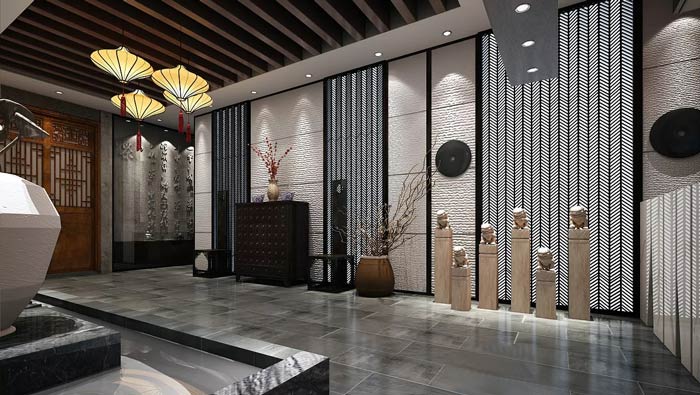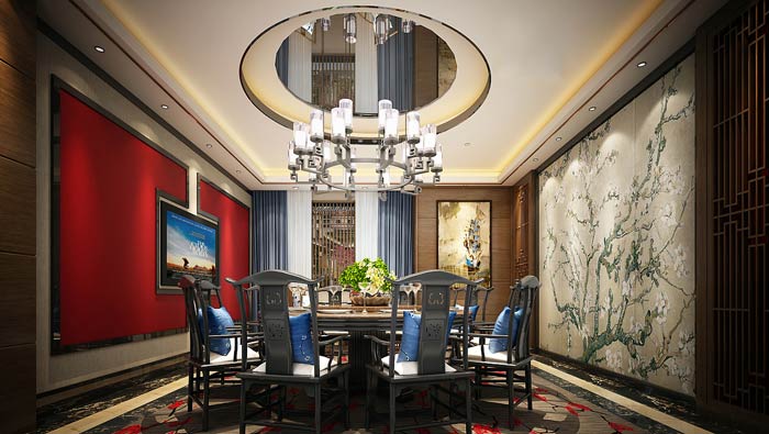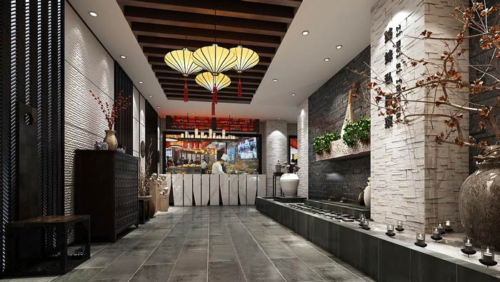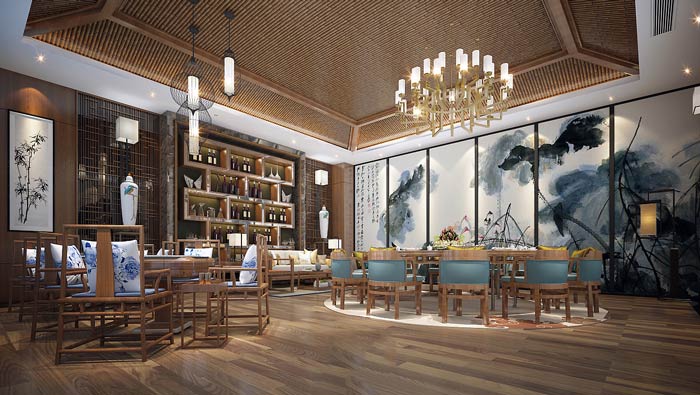 私房菜館客房設計:這里好似在山水墨畫之中,客戶在山水墨畫之中吃飯,也是一個不錯的創(chuàng)意,這里給人的是一種意境,讓客戶在這里感受到不同,讓客戶在這里感受到畫中的世界。