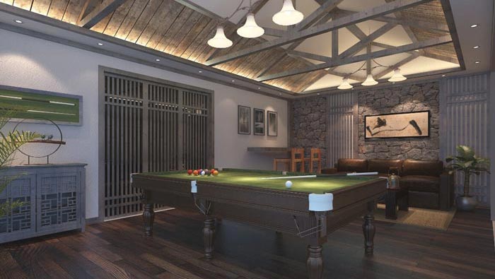 娛樂區(qū)域的設(shè)計:當朋友們交談感覺乏味的時候,可以在這里打打臺球,相互之間彼此活動一下,室內(nèi)活動本就不多,再加上此處的條件有限,臺球無疑是最佳的選擇,但是此處的氛圍卻可以完全彌補這樣的缺憾,沒有吵雜的聲音、沒有光污染,有的只是我們在這里,感覺我們好像脫離了世界一般,進入到另外一個維度。