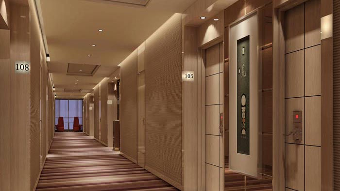 走廊的設(shè)計:我們在此處第一眼看到的就是房間標(biāo)志,這也是設(shè)計師特意為之,因為在設(shè)計師看來,酒店的優(yōu)點是大而全,但是缺點就是房間過多,會讓顧客感受無所適從,在尋找房間的過程中會遇到很大的阻力,這也是現(xiàn)在酒店設(shè)計中都會注意的一點,此處設(shè)計師采用柔光與空間的對比,讓顧客可以輕松的知道自己在那里,讓客戶不會迷失。