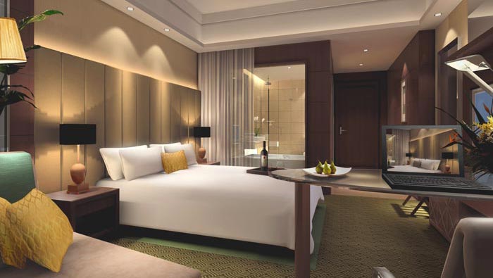 商務(wù)大床房的設(shè)計:此處屬于酒店的標(biāo)準(zhǔn)間,在這里顧客可以辦公與休息,但是此處的辦公環(huán)境不同,讓顧客在愉悅的氛圍中辦公,并支持辦公的各種輸出,以此解決客戶的后顧之憂,當(dāng)顧客品著一杯紅酒休息和辦公,相信這樣的一種氛圍對人來說本身就是一種享受。