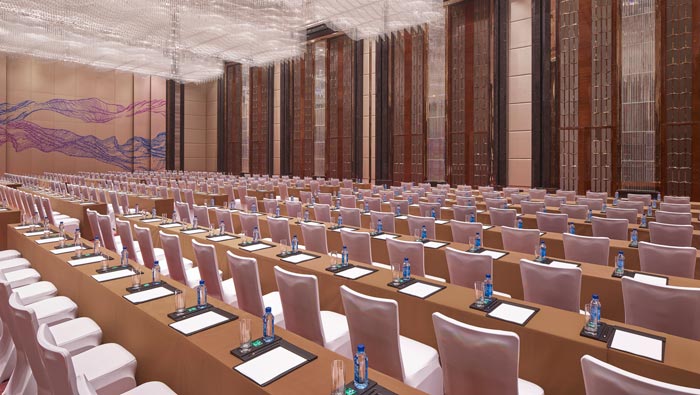 大型會議室的設(shè)計:設(shè)計師在設(shè)計的時候,了解到酒店本身就與很多大型企業(yè)有往來,故此設(shè)計師在于客戶交流之中,打造了此處大型的會議室,設(shè)計師的目的就是將會議室酒店融入空間之中,讓酒店功能更加齊全,同時會議結(jié)束之后,休息也是常態(tài),這是一種新型的連鎖模式。