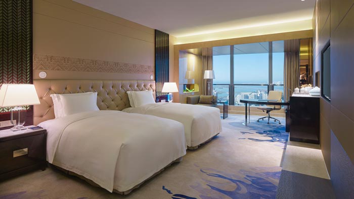 雙人間的設(shè)計:此次的落地窗是一大亮點,當顧客進入空間之后,相信也是很累了,設(shè)計師要做的就是讓顧客可以在這里得到暫時的緩解,此時落地窗發(fā)揮了作用,顧客坐在窗邊,欣賞著外面的車水那龍,欣賞著外面逐漸變小的建筑與人,讓自己的心平靜下來。