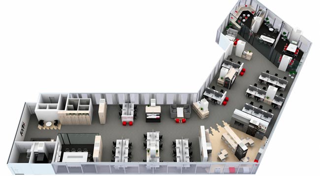 是假想房間沒有天花板,從上空俯視所有房間家具布置的圖紙,標準的平面圖上有所有家具和主要家電的尺寸、位置分布和房間所有墻、窗、門的位置和尺寸標注。
