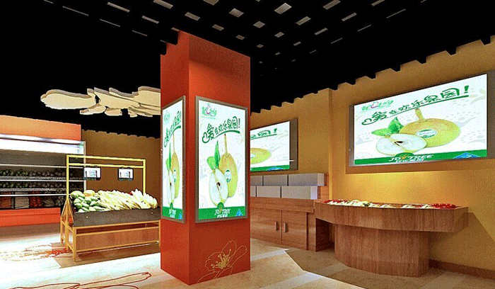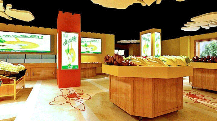1:水果店裝修要明快簡潔,以綠色等清爽的顏色為主。出口和入口分開,便于引導顧客采購路線;