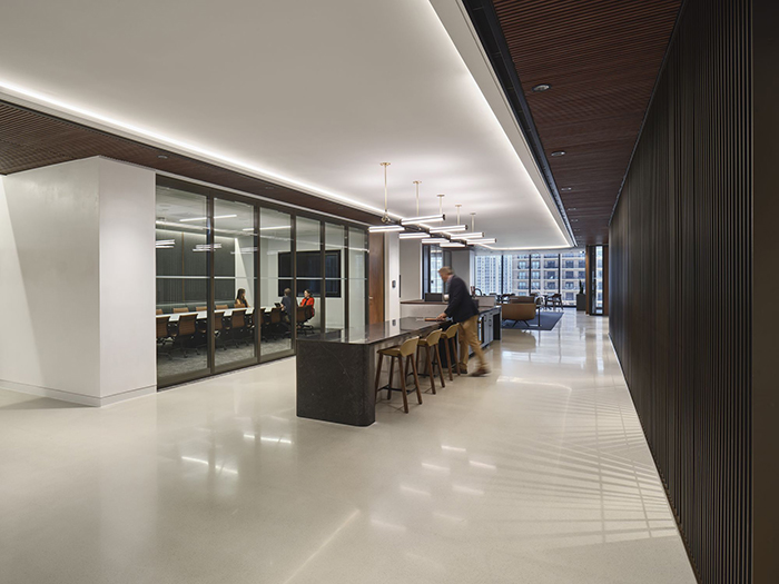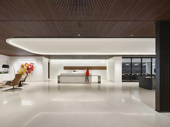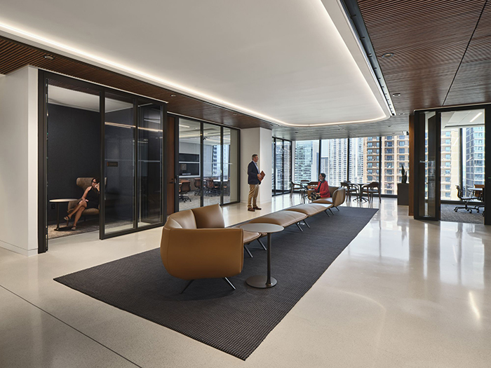 辦公室被設計為一個中性的背景,通過簡單的工藝、運動和光線營造出簡單而引人入勝的空間??臻g反映了未來面向辦公環(huán)境的思考,提供了升級的客戶和員工體驗,并服務于不斷發(fā)展的法律和科技文化工作環(huán)境。