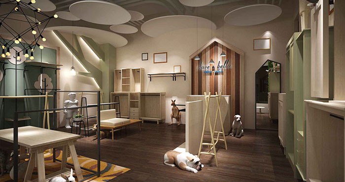 以后現(xiàn)代主義為主導(dǎo),融入了西方抽象派的夸張手法來突出品牌店面風(fēng)格,其中用材考究、簡(jiǎn)練,色調(diào)搭配不拘一格,氣氛另類、典雅,使人感覺清新、心曠神怡。