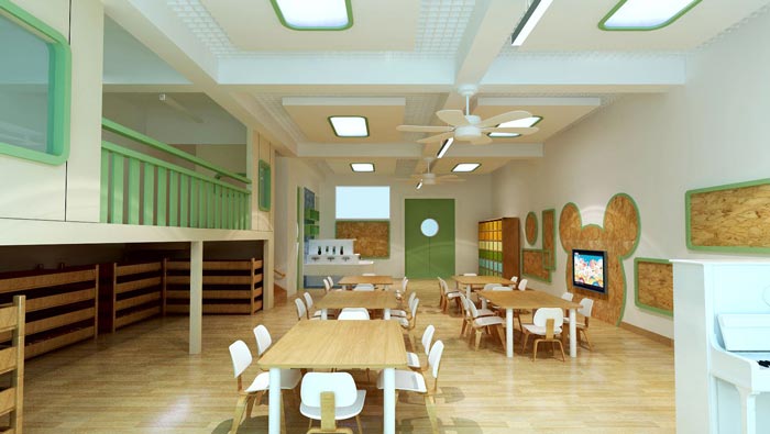 教室的設(shè)計(jì):此空間可以容納下30個(gè)幼兒,設(shè)計(jì)師在設(shè)計(jì)中希望將一切都加以精簡(jiǎn),從座椅的排列與選擇上可以看出,設(shè)計(jì)師的精簡(jiǎn)取得了效果,雖然人多了起來(lái),但是一點(diǎn)也不會(huì)顯得擁擠,設(shè)計(jì)師要做的就是兼顧實(shí)際需求與實(shí)用之間的平衡,為孩子打造一個(gè)舒適的學(xué)習(xí)環(huán)境。