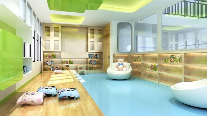 閱讀區(qū)域的設(shè)計:在這里有著各種各樣的圖畫,孩子們可以在這里欣賞到自己喜歡的各種各樣的書籍,讓孩子們從小養(yǎng)成獨立學(xué)習(xí)的習(xí)慣,設(shè)計師在設(shè)計中,特別強調(diào)隨意、自然,故此在設(shè)計中沒有規(guī)定座椅的位置,設(shè)計師希望在此處孩子們可以不受任何的干擾,做自己想做的事情。