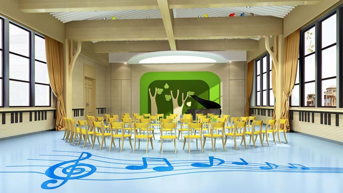 音樂教室的設(shè)計:在這里孩子們仿佛進入了音樂的世界,在這里孩子們可以翩翩起舞,音樂最是能夠打動每個人,設(shè)計師希望孩子們在載歌載舞之中,可以釋放自己的天性,讓音樂喚醒孩子們天真爛漫的個性,讓孩子們在學(xué)習(xí)的過程中可以一直保持初心。
