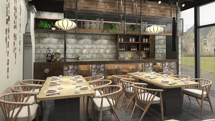 本次小型中式餐廳裝修設(shè)計(jì)方案講解到此結(jié)束,設(shè)計(jì)師在餐廳本身的設(shè)計(jì)之外,還需要考慮與室外環(huán)境的結(jié)合,因?yàn)橹挥袑⑹覂?nèi)設(shè)計(jì)與室外景色有效結(jié)合,才能夠打造特色的中式餐廳。