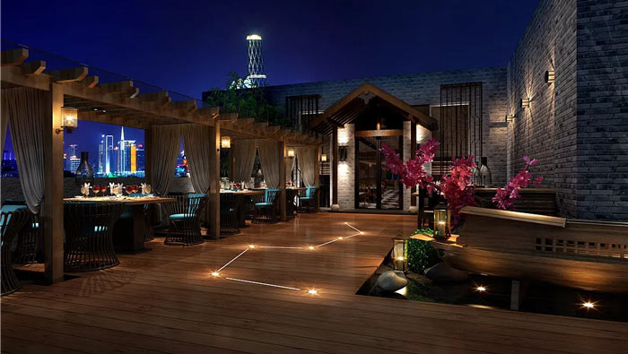 中式餐廳陽臺設(shè)計:北斗七星經(jīng)過燈光的特殊處理重現(xiàn)在人間,這讓我們仿佛自身與天上人間一般,在這里現(xiàn)實與古代融為一體,讓人感受到不一樣的就餐環(huán)境。