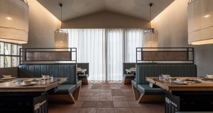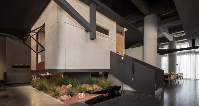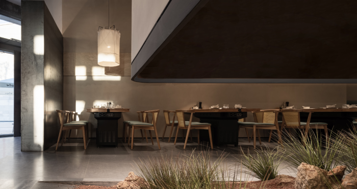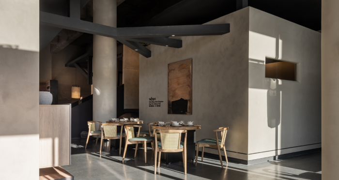 這是“侘寂煙火-如熹RUXI”餐廳的設計理念和品牌故事。餐廳以打邊爐為核心,強調“侘寂”美學的孤寂與市井煙火的對比。設計師通過將空間化零為整、打通室內邊界,營造出人與自然之間的深層關系??臻g設計以“侘寂煙火”為主題,運用開放界面和透明封閉界面,將自然光引入作為主要照明方式,創(chuàng)造出豐富的光影韻律。設計希望通過空間的沉浸感讓食客放松下來,享受當下。整體空間設計質樸自然,融入了水墨元素,增加了調性和趣味性。通過在“侘寂”中感受人間煙火氣,設計希望重新尋找通往松弛和諧的理想生活。