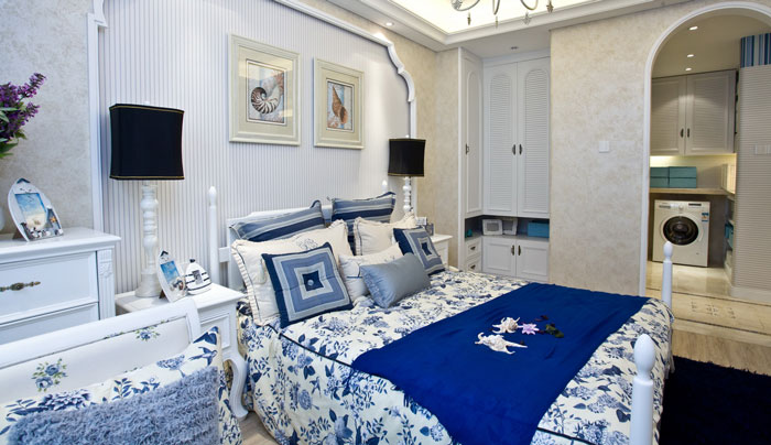 如馳騁在浩瀚的海洋一般,寬敞開闊;藍色的床品搭配白色的床架,條紋地板或地毯的結(jié)合,將地中海風格臥室打造的簡單舒適。