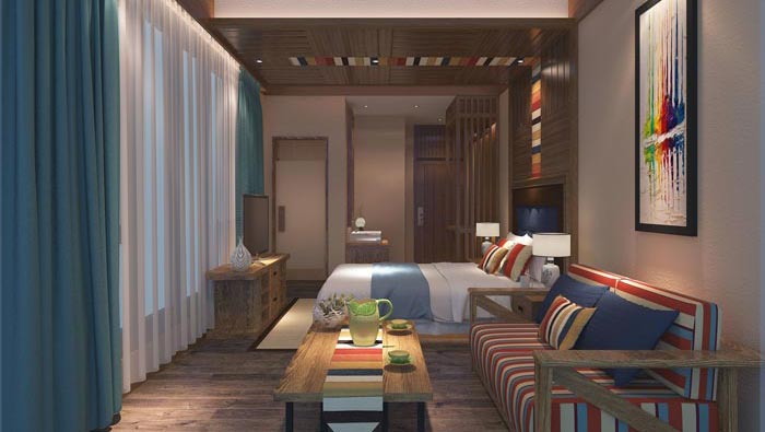 古風(fēng)+現(xiàn)代客房的設(shè)計(jì):此處可以感覺到濃郁的古色古風(fēng),雖然不明顯但是卻總有這樣的感覺,現(xiàn)代風(fēng)的融入給人一種眼前一亮的感覺,當(dāng)客戶拖著勞累的身體進(jìn)入客房之后,一杯濃郁的茶香會(huì)讓人們瞬間感覺精神起來,靜靜的坐下來品一杯茶水,一身的疲憊盡皆消去。