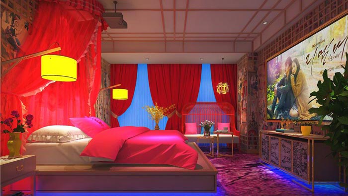 本次為情侶主題酒店裝修設(shè)計項目,設(shè)計師在于客戶的交流中,一致認(rèn)為情侶主題酒店未來有很大的發(fā)展空間,在此方面雙方達(dá)到共識,之后設(shè)計師共規(guī)劃22間主題客房,22種不同的體驗,不同的景色讓客戶感受到不同的情景,讓客戶每一次來都有收獲,這才是本次設(shè)計的重點重心。