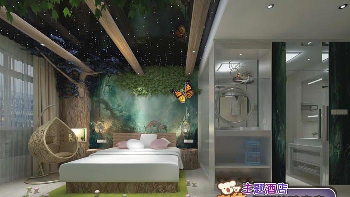 綠野仙蹤客房的設(shè)計:綠野仙蹤講述了美國堪薩斯州小姑娘,多蘿西被龍卷風(fēng)帶入魔幻世界,在“奧茲國”經(jīng)歷了一系列冒險后最終安然回家的故事,設(shè)計師希望給客戶一場特殊的、奇妙的探險旅行,讓客戶在旅行中增長見識,培養(yǎng)內(nèi)涵,得到了智慧與勇氣。