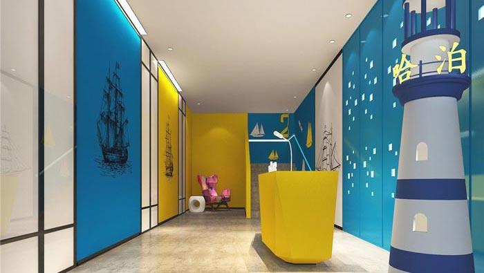 本次為港灣主題酒店裝修設(shè)計項目,設(shè)計面積在1500平方,設(shè)計師在與客戶的交流中,了解到客戶希望給大家營造一個避風(fēng)、避浪、安全停泊的場所,這是客戶游歷海洋之后突發(fā)的靈感,因為對于很多人來說,海洋是一個未知的區(qū)域,讓人充滿了好奇、神秘,客戶就是希望將其搬上陸地,讓更多的人可以感受到。
