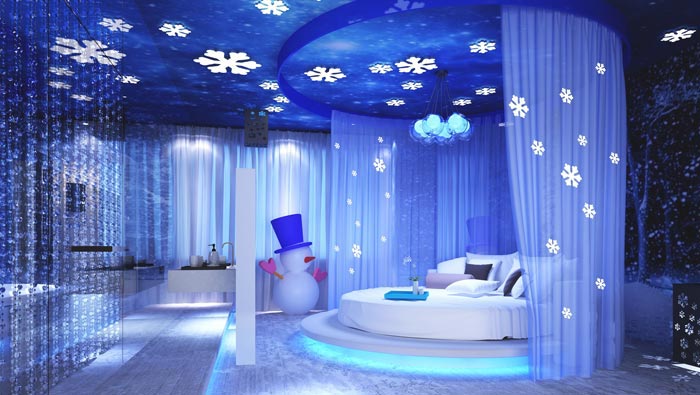 瑞雪客房的設計:正所謂瑞雪兆豐年,這是古代先賢總結(jié)的自然規(guī)則,其中包括了雪的重要性,我們躺在床上雪花隨風飄揚而下,讓我們仿佛置身在大雪紛飛之中,一旁雪人為我們站崗放哨,此處不管是夏季還是冬季,對于客戶來說都是一個不錯的場所,讓我們在此地見證大自然的神奇與美麗。
