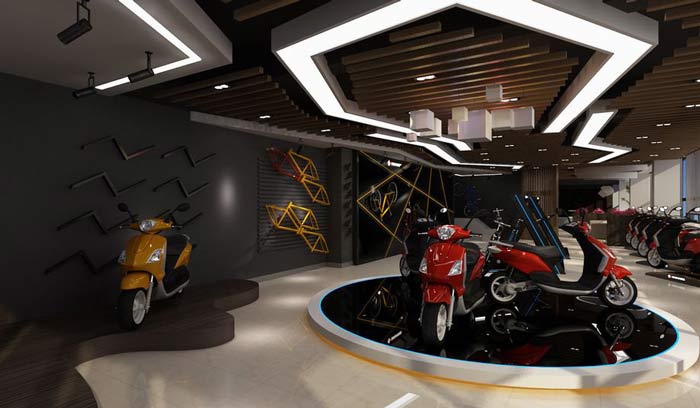 設(shè)計理念:設(shè)計師是首次接手自行車、電動車在一起的專賣店裝修設(shè)計,在設(shè)計之初和業(yè)主進行了深入的交談,不管是電動車展廳還是自行車展廳,在設(shè)計的時候,都以透出各自的特點為首要條件,通過設(shè)計襯托出電動車和自行車不一樣的風(fēng)格。