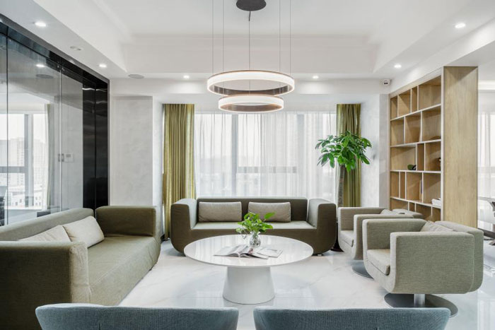 本次杭州古蕩辦公室裝修設計效果圖講解到此結束,設計師在辦公室設計中,以現(xiàn)代簡約做為辦公室設計關鍵詞,設計師希望打造一個高品質(zhì)的辦公生活的時尚空間。