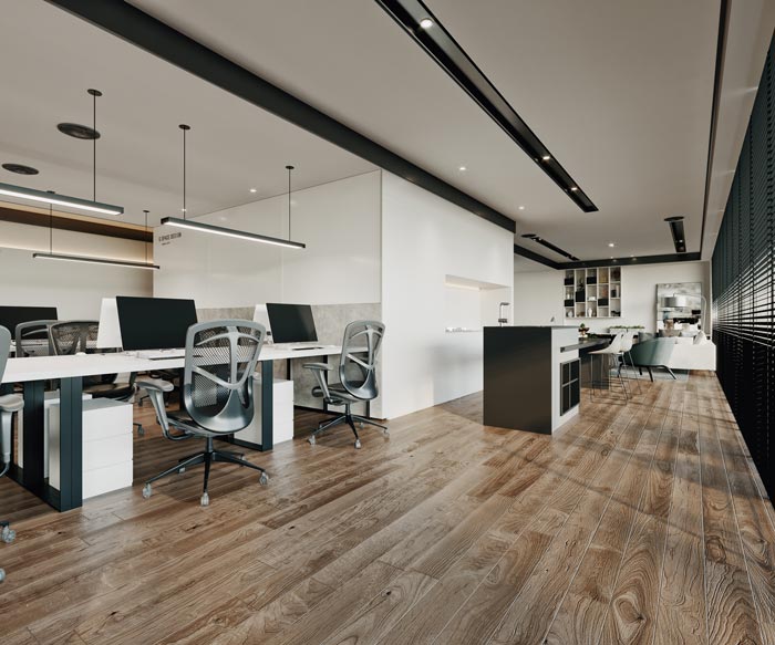 本次為辦公室裝修改造效果圖,設計面積400平方,設計師以簡潔、開放為辦公室設計風格,目的就是希望打造一個舒適的辦公空間。